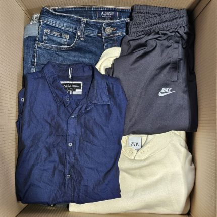 Dostępne są zarówno klasyczne warianty MIX męski (mix sezonów / wiosna–lato / jesień–zima), jak i pakiety bardziej „precyzyjne” (np. męskie spodnie, koszule, koszulki t-shirt).
