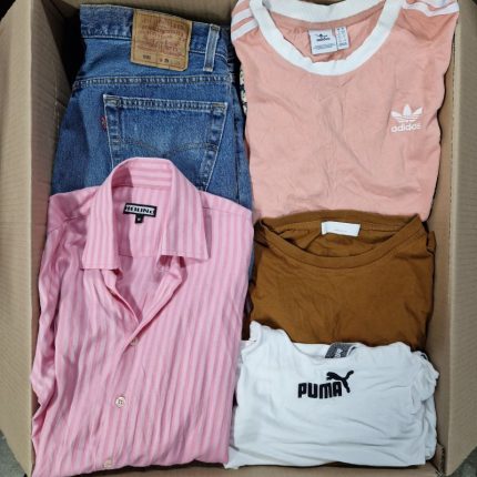 Będzie to mix męskich koszul z długim i krótkim rękawem, zarówno tych wyjściowych, garniturowych, jak i luźnych krojów i wzorów wakacyjnych. Jeżeli chodzi o marki, które znajdziesz w pakiecie: jest to cały przekrój modowych marek. Największy odsetek to popularne sieciówki jak: Zara, H&M, Reserved, Sinsay, Primark, Shein, itp. W pakiecie znajdują się również marki premium, na przykład takie jak: Levis, Lee, Wrangler, Adidas, Nike, Puma, Reebok, Calvin Klein, Tommy Hilfiger, Massimo Dutti, Ralph Lauren, itp. Mogą również zdarzyć się ubrania od drogich i indywidualnych projektantów.